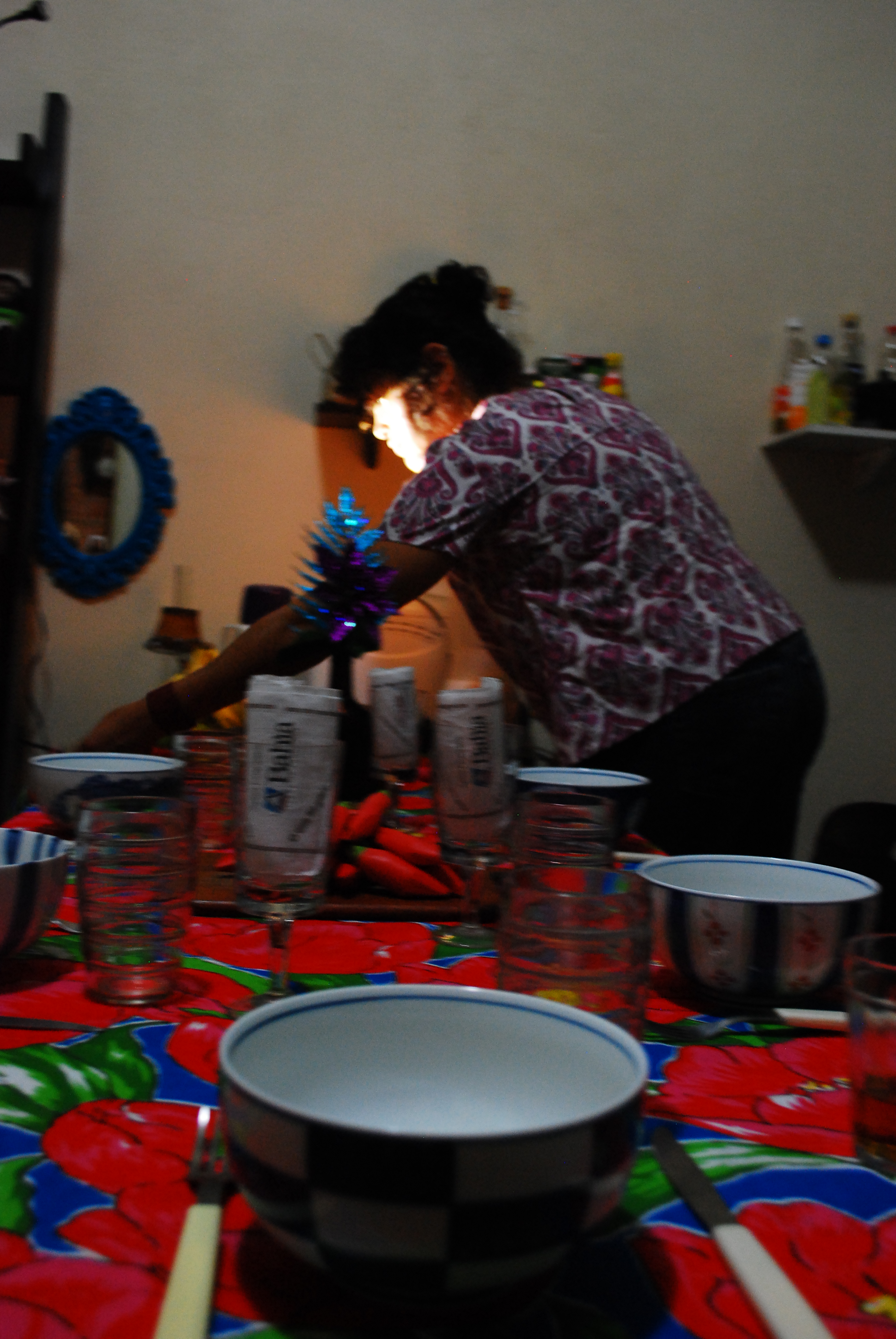 Kátia Najara finalizando a mesa e a ceia que assinou, para a versão-jantar de Isto não é uma mala/ Foto: Miriam Antonia